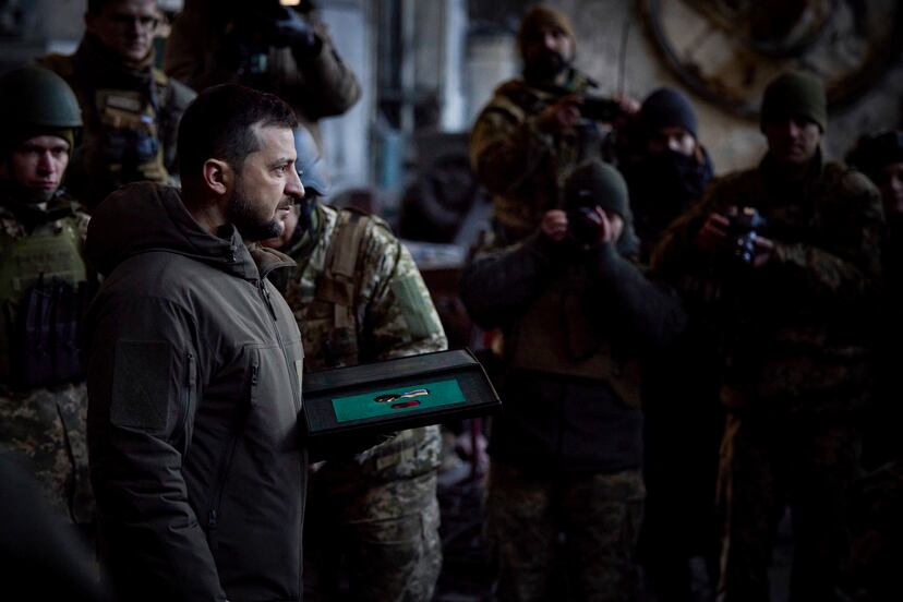 En el que probablemente sea su viaje más arriesgado en los 300 días de guerra, el presidente ucranio, Volodímir Zelenski, viajó este martes a Bajmut, una ciudad en la región de Donetsk, en Donbás, donde se libran los combates más duros de todo el país. En un viaje no anunciado a lo que se ha convertido en el principal y más sangriento frente de batalla y donde se combate ya en algunas calles, el líder ucranio desafió a las tropas del Kremlin con su visita a puestos avanzados del Ejército, donde ha entregado condecoraciones a varios soldados. Bajmut, que, según Zelenski se ha convertido en “ruinas quemadas”, no tiene sobre el papel gran importancia geoestratégica, pero se ha convertido en una simbólica pieza tanto para Rusia —que pese a sus gravísimas pérdidas no deja de enviar equipos de asalto y que está utilizando su técnica de arrasar para conquistar— como para Ucrania, que está aguantando de manera férrea. Kiev ha informado de la visita este martes, aunque no ha especificado el día exacto del desplazamiento.