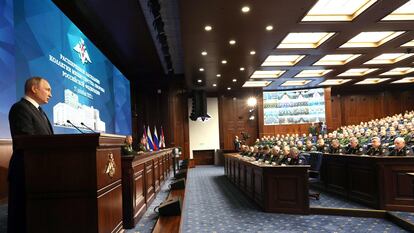 En ese proceso de mejora constante de su capacidad de combate, Putin ha destacado las fuerzas nucleares. “Continuaremos manteniendo y mejorando la preparación para el combate de nuestra tríada nuclear”, ha agregado. Se trata de misiles lanzados desde silos terrestres, submarinos en navegación y aviones en vuelo.