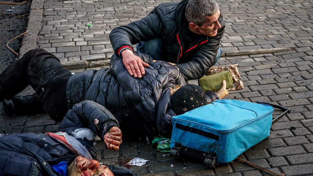 Danylo Stepaniuk, uno de los fumadores, asegura que uno de los muertos era un joven que acababa de volver a la ciudad para evacuar a su madre de una ciudad en la que las condiciones de vida se van haciendo más complicadas. El ataque pillo al chico en el coche y dejó su cuerpo carbonizado, dice Stepaniuk.