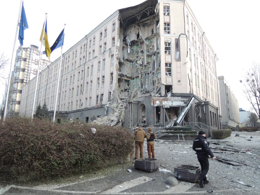 EL PAÍS visitó un hotel céntrico que fue parcialmente destruido por un Kalibr. El edificio, que estaba vacío, es colindante al Palacio Nacional de las Artes de Ucrania, uno de los principales espacios de la ciudad para conciertos y obras de teatro. El palacio también sufrió desperfectos, así como una escuela en la misma manzana. Este diario no pudo identificar ningún objetivo militar cercano, aunque las autoridades impedían fotografiar una fábrica situada frente al hotel, el posible objetivo ruso. En el hotel se personaron funcionarios de la Fiscalía ucrania para la investigación de crímenes de guerra.