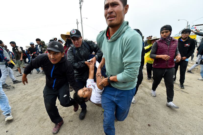 Un manifestante es trasladado tras sufrir heridas en un enfrentamiento con las fuerzas de seguridad, el jueves en Arequipa. Foto: José Sotomayor / AP | Vídeo: EPV