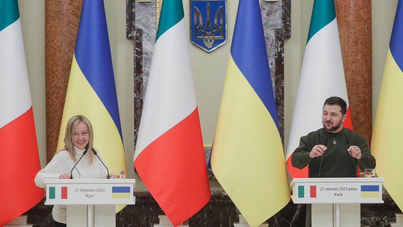 La primera ministra ofrece su apoyo al presidente Zelenski en una visita ensombrecida por el apoyo a Putin de Silvio Berlusconi, socio de la coalición que gobierna Italia