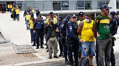 Las fuerzas de seguridad brasileñas detienen a los partidarios del expresidente de Brasil, Jair Bolsonaro, después de que invadieran el Palacio de Planalto, en Brasilia, el pasado 8 de enero. Foto: UESLEI MARCELINO (REUTERS) | Vídeo: EPV