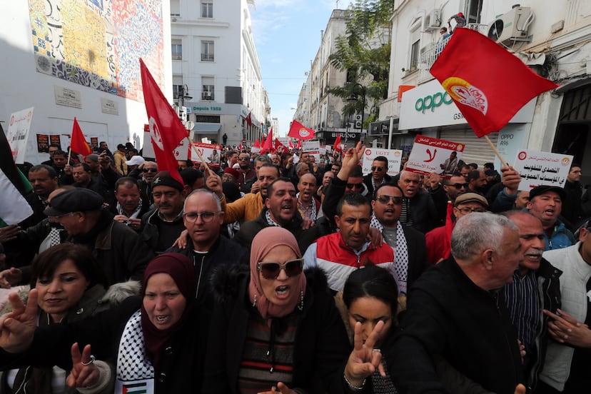 El presidente Kaid Said, que gobierna en Túnez por decreto tras haber disuelto el Parlamento en 2021, ha conducido al país magrebí a su crisis más grave desde el estallido que hace 11 años desencadenó la Primavera Árabe. Miles de manifestantes han desfilado este sábado por el centro de la capital tunecina esgrimiendo barras de pan al grito de “libertad”. La marcha, convocada por la poderosa Unión General Tunecina del Trabajo (UGTT), central sindical que cuenta con más de un millón de afiliados en un país con cerca de 12 millones de habitantes, representa el primer desafío frontal al poder del presidente Said después de la ola de represión y acoso a los inmigrantes subsaharianos desencadenada en el último mes. “Necesitamos un discurso [político] que una y no que divida al país”, advirtió el secretario general de la UGTT, Nuredín Tabubi, informa la agencia Efe.