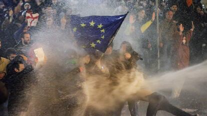 La primera protesta, la del martes por la noche, fue disuelta con cañones de agua y resultaron detenidas 66 personas. Entre los arrestados figuraba el líder del partido opositor Girchi, Zurab Japaridze. “La comunidad internacional condenará a las autoridades georgianas por dispersar una manifestación pacífica”, advirtió el jefe de otro partido opositor, Guiorgui Vashadze, líder de Estrategia Aghmashenebeli. Según la versión del Ministerio del Interior, más de 50 agentes de policía resultaron heridos y se empleó la fuerza contra los manifestantes “por cometer vandalismo y desobedecer a las fuerzas de seguridad”. Los partidos de la oposición han advertido este jueves de que los manifestantes impedirán a los diputados el acceso al Parlamento si no se suspende la tramitación de la ley, según el diario independiente ruso Jólod.