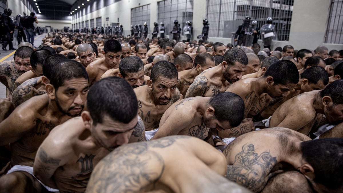 El vídeo del miércoles, de menos de minuto y medio, parece el tráiler de una serie de Netflix. Con música de película de acción, se repiten las escenas de presos esposados de pies y manos, vestidos con apenas un calzón blanco para que se vean los tatuajes, una de las marcas de las pandillas. Van saliendo en fila, con la cabeza agachada hacia un autobús que los lleva a la nueva cárcel, donde se colocan hacinados como animales en el suelo, en interminables filas de cuerpos pegados unos a otros. Los vídeos exhibiendo a los presos han sido una constante durante los últimos meses en el marco de su polémica política de seguridad.