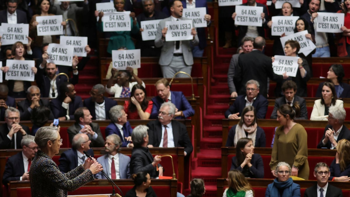 Cuando Borne iba a tomar la palabra ante el hemiciclo, buena parte de los diputados empezaron a cantar La Marsellesa, en un ambiente de agitación poco habitual. Los diputados de La Francia Insumisa, el partido anticapitalista que lidera la izquierda en Francia, llevaban carteles que decían: “64 años, ¡es no!”. La presidenta de la Asamblea, Yaël Braun-Pivet, suspendió la sesión por dos minutos. Al reiniciarse, todavía entre cánticos y gritos de “dimisión, dimisión”, Borne declaró que, de acuerdo con la fórmula constitucional, “comprometía la responsabilidad del Gobierno”, y asumía que, en los próximos días, se votarían una o varias mociones de censura en su contra. “La democracia tendrá así la última palabra”, añadió. En una entrevista a última hora de la tarde, la primera ministra se declaró “muy conmocionada” por los abucheos de la oposición en la Asamblea.