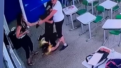 Una cámara de seguridad captó el momento en que un alumno de la Escuela Estatal Thomazia Montoro, en São Paulo, apuñala y mata a su profesora de Ciencias, Elisabeth Tenreiro, de 71 años. El adolescente de 13 años, entra al salón con una máscara de calavera y un cuchillo y agrede a la docente. Después comienza a atacar a sus compañeros de clase, sin lograr herir de gravedad a ninguno.