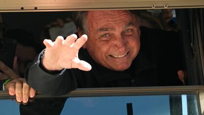 Unos cientos de seguidores, menos de los esperados y vestidos con camisetas de la selección de fútbol, se han acercado al aeropuerto para recibirle. El avión de Bolsonaro ha aterrizado a las 6.38 (hora local, cinco horas más en la España peninsular), con algo de adelanto respecto al horario previsto. Él y su partido querían un recibimiento multitudinario en las instalaciones del aeropuerto, pero la policía y las autoridades decidieron que por seguridad era mejor evitar cualquier tumulto. El ultraderechista ha abandonado el aeródromo en un coche oficial y con escolta de la policía en su condición de expresidente y ha puesto rumbo a la sede del Partido Liberal para encontrarse con sus hijos, con su esposa, Michelle Bolsonaro, que se acaba de embarcar en una incipiente carrera política propia, y con parlamentarios afines. El jefe del clan ha dado a entender que las especulaciones de que su mujer pudiera ser su sucesora son desmedidas.