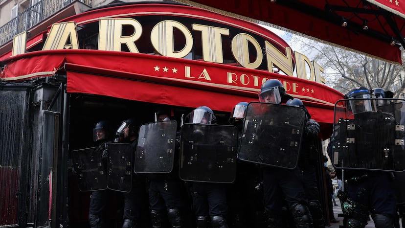 A un radio de menos de 100 metros, las otras brasseries históricas del barrio (Le Select, La Coupole, Le Dôme) estaban intactas. Y eso que la manifestación del jueves también había pasado por delante. Solo La Rotonde estaba protegida por un muro de policías antidisturbios. Solo La Rotonde fue atacada. No era la primera vez: en enero de 2020 ya sufrió un incendio.