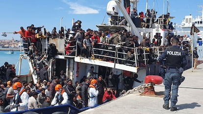 Italia ha sido la principal puerta de los migrantes que alcanzaron Europa de forma irregular en el último trimestre. Más de la mitad de las entradas a las fronteras comunitarias (27.651 en los tres primeros meses de 2023), según Frontex, la agencia europea de fronteras, se han producido por mar a través de la ruta del Mediterráneo central. El fenómeno, aunque antes se daba en menor medida, no es nuevo. Ha constituido desde hace una década el principal caballo de batalla electoral en Italia, especialmente de la derecha. Por eso, y ante el aumento en los últimos tres meses (las cifras se han cuadruplicado respecto al año anterior), el Gobierno italiano que preside la ultraderechista Giorgia Meloni decretó el martes por la tarde el estado de emergencia para afrontar la situación. Una medida inusual ―solo se había aplicado con estos fines en 2011, durante el último mandato de Silvio Berlusconi― que responde a distintas cuestiones: el gran aumento de desembarcos, la falta de capacidad de un sistema de acogida desmantelado y un claro aviso a la Unión Europea sobre la necesidad de abordar conjuntamente este desafío.