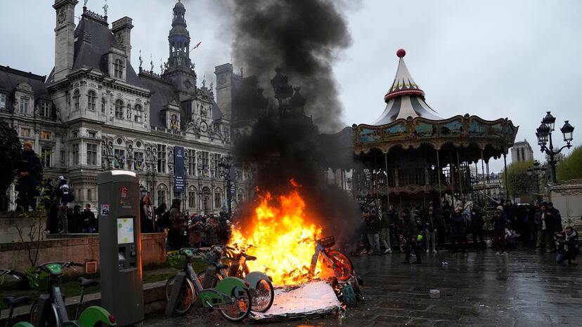 Como miles de personas en París, Nathalie Meunier, de 57 años, se encontraba este viernes frente al Ayuntamiento de la capital francesa a la espera del fallo del Consejo Constitucional sobre la reforma de las pensiones, promovida por el Ejecutivo de Emmanuel Macron. Minutos después de conocerse el fallo, Meunier sentenció: “Es una nueva bofetada al pueblo”. La institución, integrada por nueve miembros, ha aprobado los puntos esenciales de la impopular reforma de las jubilaciones, por lo que Macron tiene ahora luz verde para promulgar la ley, que busca aumentar la edad de jubilación de los 62 años actuales a los 64. La decisión generó una movilización moderada en ciudades como París, Lyon, Rennes y Nantes y algunos altercados en lugares simbólicos.