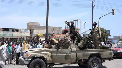El enfrentamiento entre dos generales en Sudán ha provocado ya la muerte de 97 civiles y más de 365 heridos sobre todo en la capital del país, Jartum, según los datos de un comité de médicos local actualizado a primera hora de este lunes. El origen de las hostilidades, que estallaron el sábado tras varias semanas de tensión, continúa siendo incierto, porque ambos mandos intercambian acusaciones de haber desatado la violencia con el objetivo de acaparar el poder y han cerrado la puerta a abrir negociaciones sin la rendición del otro. A la cabeza del ejército y como presidente del país se encuentra el general Abdelfatá al Burhan, de 62 años. Frente a él se ha sublevado el paramilitar Mohamed Hamdan Dagalo, de 49 o 50 años, según los medios locales, y comandante de las Fuerzas de Apoyo Rápido. Y entre los dos bandos, la sociedad civil permanece cautiva en este país de 45 millones de habitantes con gran valor geoestratégico.