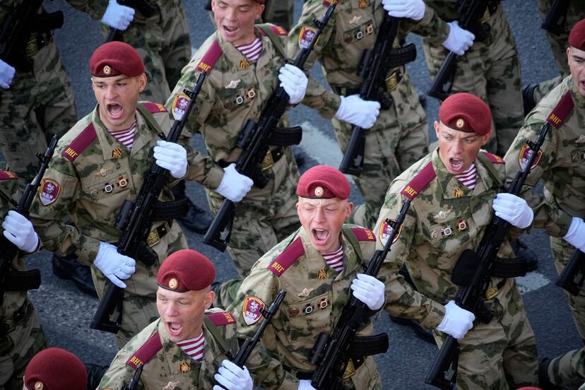 “Que no se repita”. Este es el lema que transmitieron durante años a las nuevas generaciones aquellos que vivieron en su piel la Gran Guerra Patria, el término con el que la Unión Soviética llamó a la guerra contra la Alemania nazi. Cada vez quedan menos supervivientes, y las reuniones con padres y abuelos han sido sustituidas gradualmente por el espectáculo de la parafernalia bélica en las calles, tanto en el desfile militar, que antaño se reducía al paso de soldados y no de las armas pesadas; como en las calles y las escuelas, donde niños y mayores visten la pilotka, el gorro del soldado del Ejército Rojo, y algunos emblemas que utilizan las fuerzas rusas actuales en su ofensiva.