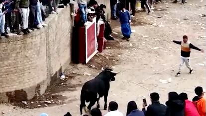 En el ‘Toro Chutay’ o ‘Jala toro’, los asistentes se enfrentan a los animales, animándolos a perseguir a la multitud