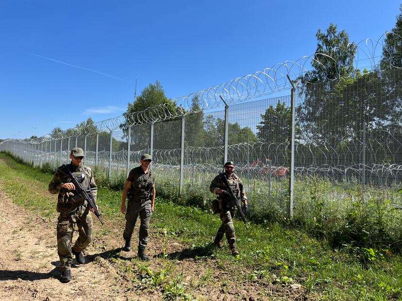 La sensación de incertidumbre por el factor Wagner eleva la tensión en el flanco oriental de Europa. Tras el episodio del motín y en vísperas de la reunión de alto nivel, un refuerzo del Ejército lituano, con armas cortas y fusiles, se ha unido a la guardia fronteriza que gestiona el comandante Sigitas Valainis en la zona de Padvarionys (en el sureste). Equipos mixtos de ambas fuerzas patrullan a pie y en coche durante unas cuantas horas al día la valla que atraviesan coloridas mariposas y avispas zumbonas, como si esa gran cicatriz de alambre no existiera. En un pulcro puesto cercano, cuatro agentes vigilan a través de 105 cámaras diurnas y 70 de imagen térmica instaladas en grandes torres en torno a los 33 kilómetros de su distrito. A lo largo de la alambrada, Lituania ha montado, además, un cable de detección del movimiento, explica con frases cortas y concisas Valainis.