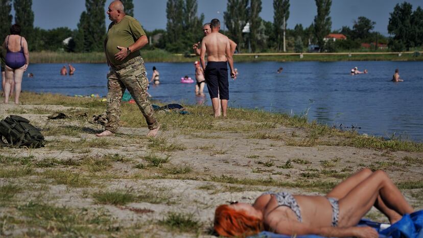 Cerca de las trincheras rusas en el este del país, hay un lago con playa donde civiles y militares tratan de olvidar la guerra