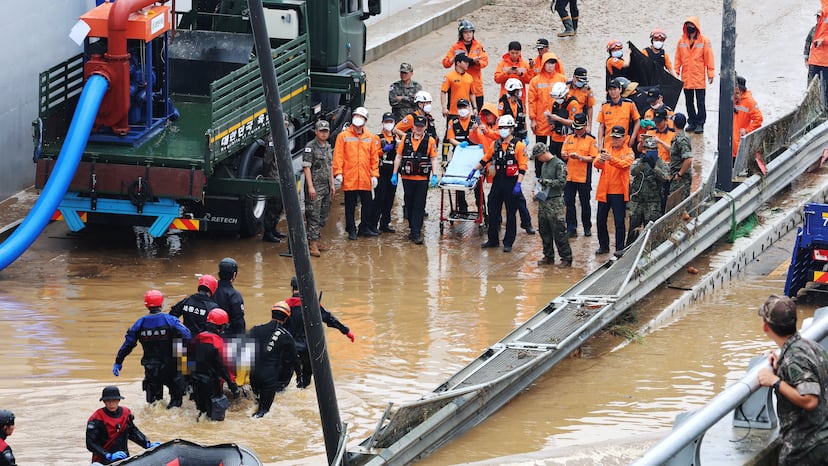 Al menos 40 personas han fallecido, 34 están heridas y 9 continúan desaparecidas en Corea del Sur a causa de unas lluvias torrenciales que han provocado gr andes inundaciones y desprendimientos en el centro y sur del país, según las últimas cifras publicadas por el Ministerio del Interior. El presidente surcoreano, Yoon Suk-yeol, acusó este lunes a las autoridades locales de las zonas afectadas de no haber seguido apropiadamente los protocolos de respuesta ante catástrofes y advirtió de que “no se puede obviar la crisis climática”, puesto que los fenómenos meteorológicos extremos se han convertido en una realidad para la nación. De media, más de 500 litros de agua por metro cuadrado han azotado el centro y sur desde el 9 de julio. Las precipitaciones se han intensificado desde el pasado jueves, coincidiendo con el punto álgido de la temporada del monzón, que comenzó a finales de junio.