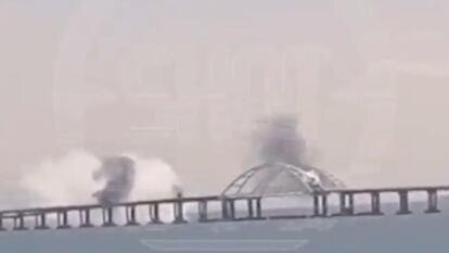 Moscú acusa a Ucrania de atacar con misiles el puente que une Rusia con la península de Crimea | El Gobierno ruso afirma haber desbaratado un ataque ucranio con 20 drones sobre Crimea | Dos muertos en ataques rusos en Járkov y Zaporiyia