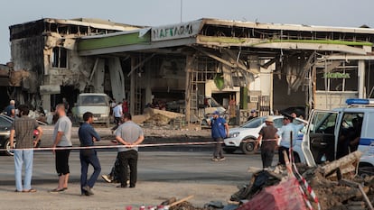 La zona afectada tras la explosión de una gasolinera en Majachkalá (Daguestán), este miércoles.KAZBEK BASAYEV (REUTERS)