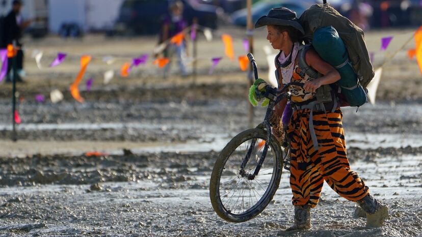 Burning Man es un evento a medio camino entre festival contracultural y retiro espiritual secuestrado con los años por el gran circo capitalista, patio de recreo de famosos, influencers y miembros de la comunidad de tecnólogos con aspiraciones espirituales de Silicon Valley. Creado en 1986 en San Francisco por un grupo de inspiración poshippy, desde los noventa se organiza en el desierto de Nevada, en una zona protegida al noroeste del Estado, a decenas de kilómetros de cualquier lugar habitado. Cuál será el impacto medioambiental de la salida desordenada a la que los elementos han obligado este año es la gran pregunta que emergerá del barro seco, una vez la situación quede controlada.