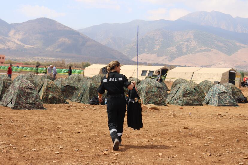 Las tiendas de campaña del campamento de la Unidad Militar de Emergencias (UME) española se alineaban este martes al sol en impecable formación frente a las del contingente británico de rescate en las afueras de Amizmiz (45 kilómetros al sur de Marraquech), una de las poblaciones más castigadas por el terremoto del viernes pasado en Marruecos, bajo la imponente cordillera del Alto Atlas en el horizonte. “Seguiremos desplegados aquí mientras haya esperanza de rescatar a alguien con vida”, zanjaba de entrada todas las dudas el comandante Enrique Bascuas, jefe de la unidad desplegada sobre el terreno, mientras se dirigía con paso decidido a asistir a una reunión de coordinación con los mandos británicos y marroquíes.