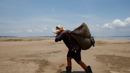 A medida que se prolonga la sequía en el Amazonas, las comunidades indígenas a la orilla del río Negro en Manaos recorren la playa durante horas para lograr obtener uno de los paquetes de ayuda enviados por el Gobierno de Brasil. El río se encuentra en su nivel más bajo desde que se empezaron a tomar registros, hace 121 años.