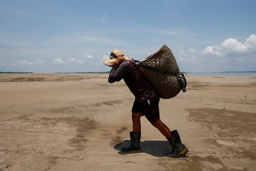 A medida que se prolonga la sequía en el Amazonas, las comunidades indígenas a la orilla del río Negro en Manaos recorren la playa durante horas para lograr obtener uno de los paquetes de ayuda enviados por el Gobierno de Brasil. El río se encuentra en su nivel más bajo desde que se empezaron a tomar registros, hace 121 años.