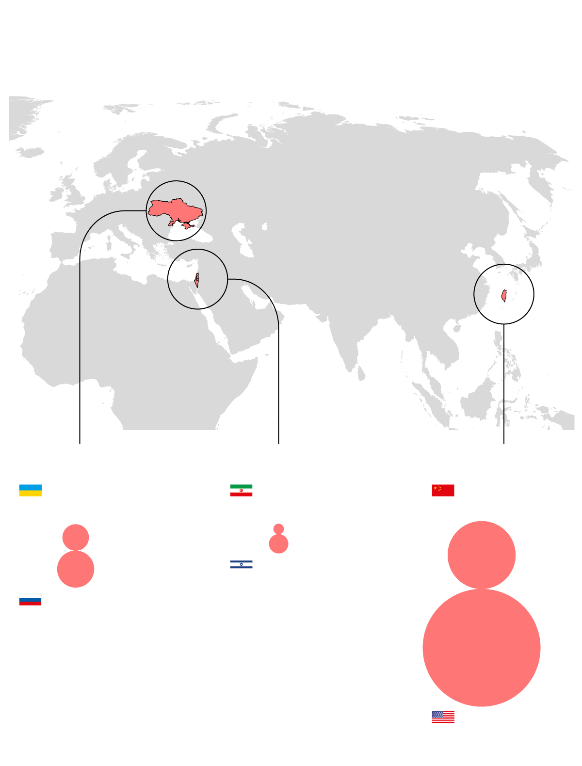 “En paralelo, el estallido de dos guerras complica las cosas”, prosigue Daalder. “La de Ucrania opone a EE UU y Occidente a China, ya que Pekín ha decidido respaldar a Rusia. No lo hace suministrando armas, que sepamos, pero sí sosteniendo la capacidad de combate rusa apoyando su economía, limitando los daños de las sanciones. Y la guerra en Oriente Próximo, a diferencia de la de Ucrania, es una donde EE UU puede verse involucrado directamente. En conjunto, las dos guerras son distracciones para EE UU que abren un espacio que China puede usar para profundizar en la proyección de sus intereses en el sureste asiático”. Taiwán es el mayor foco de riesgo.