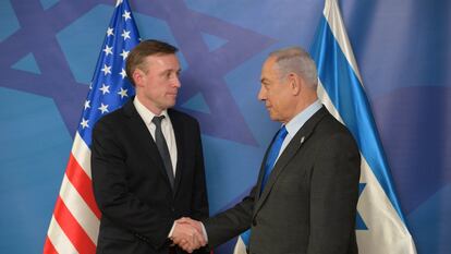 Israel ha agradecido este jueves a Estados Unidos el apoyo con armas para la guerra en Gaza y el veto ante la ONU de un posible alto el fuego pese a la presión internacional. El consejero de Seguridad Nacional, Jake Sullivan, ha sido recibido en Tel Aviv por el primer ministro israelí, Benjamín Netanyahu, con el ánimo por ambas partes de limar las diferencias surgidas entre ambos países aliados en torno a la gestión de la guerra en la Franja. Sullivan tuvo, sin embargo, que escuchar que, por mucha prisa que Washington reclame, esa operación militar a gran escala, que ha dejado ya más de 18.700 muertos, no estará acabada en semanas, sino en meses, como le comentó el ministro de Defensa, Yoav Gallant. Pero desde Washington, el portavoz del Consejo de Seguridad Nacional, John Kirby, deslizó la conveniencia de que la operación concluya más pronto que tarde. “Todos queremos que esto termine lo antes posible”, señaló. Los combates y los bombardeos siguen siendo intensos a lo largo del enclave mediterráneo palestino, mientras se agrava la crisis humanitaria de cientos de miles de gazatíes.