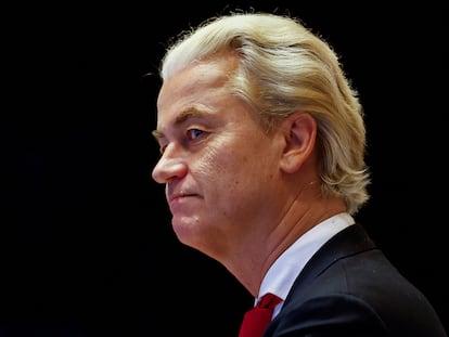 Geert Wilders, el líder extremista holandés cuyo Partido por la Libertad (PVV) ganó las elecciones del pasado 22 de noviembre, ha retirado este lunes tres proyectos de ley contra el islam en busca de apoyos para encabezar el próximo Gobierno en Países Bajos. Ninguna de las tres iniciativas ahora suspendidas tenían posibilidades de prosperar porque eran inconstitucionales, según el dictamen del Consejo de Estado. De todos modos, el gesto de Wilders muestra su aparente disposición a moderarse y poder negociar en mejores condiciones una coalición de derecha. Las conversaciones con los otros tres partidos de centroderecha dispuestos a pactar ―liberales (VVD), Nuevo Contrato Social (NSC) y el Movimiento Campesino-Ciudadano (BBB)― se reanudan el martes y está por ver si el trío está satisfecho con este paso. O si confían de veras en el giro dado por Wilders.