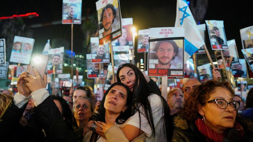 Las lluvias invernales que caen sobre Oriente Próximo mojaron el domingo por igual los campamentos de cientos de miles de desplazados en el sur de Gaza y a decenas de miles de manifestantes que reclamaban en Tel Aviv la liberación de más de un centenar de rehenes cautivos en la Franja desde el 7 de octubre. Con cerca de 24.000 palestinos muertos y 7.000 desaparecidos, la guerra cumple 100 días sin que el Gobierno del primer ministro israelí, Benjamín Netanyahu, haya logrado sus objetivos de rescatar a los secuestrados y erradicar a la milicia de Hamás, a la que aún combate en el centro y el sur del enclave costero. Dos sociedades sobreviven ahora trastornadas por el estrés postraumático en medio de una contienda cuyo final no se vislumbra. Toda la población gazatí, hacinada, según la ONU, en un territorio devastado ajeno a la condición humana. Y al menos un tercio de los israelíes, según un estudio que constata, además, el respaldo a la continuidad de las hostilidades dentro del Estado judío.