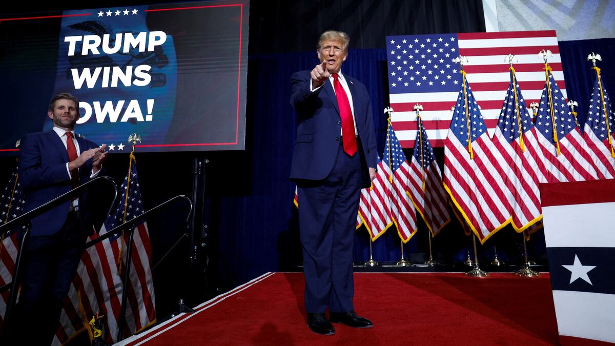 “Siempre es un gran día para ser un oso polar”, reza un lema en los pasillos del instituto North, en Des Moines (Iowa). Los Osos Polares son los equipos deportivos de este instituto, donde un grupo de votantes republicanos se ha reunido a elegir a su candidato a las presidenciales de noviembre. Fuera hace 21 grados bajo cero y hay montañas de nieve. Es un buen día para ser un oso polar, sin duda, pero también es un buen día para ser Donald Trump. Tal y como anticipaban las encuestas, el expresidente ha arrasado en los caucus de Iowa, incluido el del instituto North, con un triunfo récord.