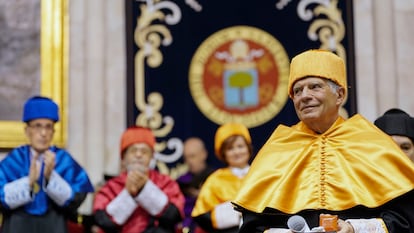 En su discurso de agradecimiento al nombramiento como doctor honoris causa en la universidad donde dio clase en 1982 como profesor agregado de Matemáticas, Borrell también ha vuelto a reclamar la creación de un Estado en Palestina, como se hiciera antaño en Israel, porque en caso contrario “la espiral de odio seguirá generación tras generación”. Para la máxima figura de la política exterior comunitaria, “la única solución es crear dos Estados que compartan la tierra por la que llevan 100 años muriendo”, una solución que se debe “imponer desde el exterior”, o sea, desde la comunidad internacional. “Todo el mundo, excepto Israel”, desea este desenlace, ha agregado, si bien también ha hecho autocrítica del papel de la UE: “Ha hecho poco y predicado mucho”.