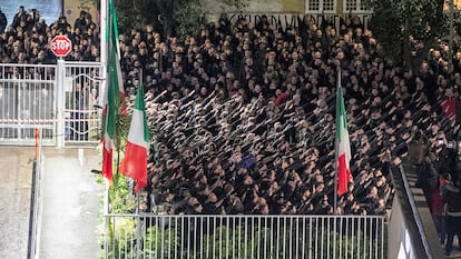 Italia no logra pasar página de su pasado fascista. Ya sea por los orígenes identitarios del partido de la primera ministra, Giorgia Meloni, o por las heridas mal cicatrizadas de aquel periodo, que cristalizan cada cierto tiempo en celebraciones multitudinarias de carácter nostálgico. El debate sigue sobre la mesa, también en su aspecto más jurídico. Y el Tribunal Supremo lo mantuvo este jueves por un tiempo más alegando que realizar el saludo romano con la mano en alto, el saludo fascista, solo supone un delito si implica “un peligro concreto” de reorganizar el disuelto Partido Fascista. En cualquier otro contexto, puede hacerse libremente.