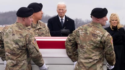 Las acciones militares estadounidenses coincidieron con la reunión, también el viernes, del presidente y la primera dama, Jill Biden, con las familias en duelo en la Base Aérea de Dover (Delaware) para el traslado de los tres militares estadounidenses muertos en ese ataque con drones en Jordania del pasado fin de semana, en el que también resultaron heridos 41 militares estadounidenses.