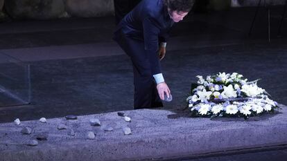 La libertad y la vida fueron los términos más repetidos por el presidente argentino en el atril. El grito de “¡Viva la libertad, carajo!”, coreado como eslogan por Milei, se ha hecho tan famoso que hasta un grupo de escolares de visita al museo lo gritó cuando observaron la comitiva. Ya se había escuchado la noche del martes, cuando Milei, que no oculta su deseo de convertirse al judaísmo, acudió al Muro de las Lamentaciones en la zona vieja de la Jerusalén Este ocupada por Israel. Allí lloró emocionado y recibió un caluroso baño por parte de la ciudadanía, muchos de ellos de origen argentino.