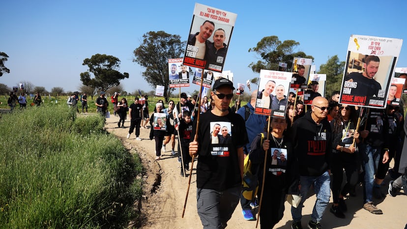 Ziv y Gali Berman, gemelos de 26 años secuestrados en el kibutz Kafar Azza, comparten uno de esos carteles. Va en manos de Macabit Mayer, su tía, que avanza mientras los alza hacia arriba para que se vean bien. “Han de ser liberados en un acuerdo. Tememos que si el ejército va a rescatarlos sería peligroso”, comenta en compañía de su hermano Nir Sobol. Hasta el momento solo dos civiles han sido liberados por el ejército en Gaza. Fue el pasado 12 de febrero en una operación inédita desarrollada en Rafah, en el sur. Alguno de los rehenes perdió antes la vida en intentos de liberación que fracasaron en otras zonas de la Franja. Tropas israelíes, además, mataron a tres de los secuestrados mientras enarbolaban una bandera blanca. “Tenemos esperanzas en que las cosas se estén desarrollando (por parte del Gobierno) a puerta cerrada. Debemos confiar en ellos, no nos queda otra”, afirma Macabit Mayer.