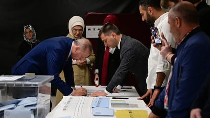 Pasada la medianoche en Turquía, el presidente Erdogan compareció con gesto circunspecto en el balcón de la sede de su partido, donde acostumbra a dar los discursos victoriosos, si bien ante mucho menos público de lo que es habitual. “No hemos logrado los resultados que esperábamos”, reconoció y, en un lenguaje más conciliador que el agresivo que utiliza habitualmente durante las campañas, dijo que “los verdaderos vencedores no son los candidatos, sino la nación turca”. “Hemos demostrado la madurez de la democracia turca. El día más crítico de las democracias son las elecciones, cuando se expresa la voluntad de la nación”, afirmó. Al mismo tiempo, aseguró que esto no es un final, sino que —sin dejar claro si se refería a su partido o a él, que prometió hace unas semanas que no será candidato en las próximas presidenciales— “continuará su camino” tras valorar y sacar conclusiones de los resultados. También aseguró que su Gobierno proseguirá con sus actuales políticas económicas de estabilización e incrementará las operaciones militares contra el grupo armado kurdo PKK en Siria e Irak.