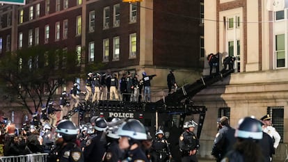 Calles cerradas al tráfico en un amplio perímetro en torno a la Universidad de Columbia (Nueva York) y el despliegue de cientos de policías de operaciones especiales, con equipamiento antidisturbios, dieron en la noche del martes la señal de alarma de que un desalojo a la fuerza de la protesta propalestina del campus era inminente. Pasadas las siete de la tarde, hora local, tras un día de calma tensa, jalonado por concentraciones de estudiantes en apoyo de los manifestantes encerrados desde primera hora de la mañana del martes en uno de los edificios del campus, miembros del Grupo de Respuesta Estratégica del Departamento de Policía de Nueva York se dirigieron a uno de los dos accesos principales del campus de la prestigiosa universidad. En torno a las 21.15, hora local, entre 30 y 40 miembros del grupo entraron a través de una escalera articulada, casi a cámara lenta, por una ventana de la fachada del edificio, el Hamilton Hall, con una larga tradición de encierros universitarios. Finalmente, a primeras horas de la madrugada de este miércoles, el edificio fue desalojado y decenas de estudiantes quedaron detenidos sin ofrecer resistencia.