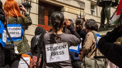 Tras el cierre a cal y canto de Columbia a consecuencia de la ocupación de un edificio por manifestantes, el lunes, los estudiantes “tenían lo que todos los periodistas [profesionales] buscaban: acceso al campus”, resume Juan Manuel Benítez, profesor de periodismo local en la Escuela de Periodismo de Columbia, el epicentro de una movilización que recorre todo el país. Benítez, que previamente trabajó en la televisión local NY1, tuteló esta semana la cobertura de sus alumnos, además de ofrecerles apoyo logístico y profesional, y en ocasiones volvió a ponerse el traje de faena para, “a la vez que editaba textos [de los estudiantes] y les daba toda la cobertura logística que precisaban, grabar vídeos e imágenes” de lo que sucedía.