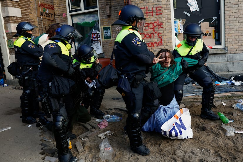 En Países Bajos, las fuerzas antidisturbios empezaron en la tarde del miércoles a desalojar a los estudiantes que se manifestaban contra la guerra de Gaza en edificios de la Universidad de Ámsterdam. Los agentes intervinieron cuando el rectorado denunció allanamiento, vandalismo y coacciones en esos locales por parte de los concentrados. Según la policía, “no hay solo estudiantes, sino también personas ajenas a la protesta y que buscan deliberadamente el choque con las fuerzas del orden”.