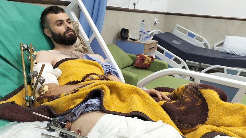 Abadi, de 22 años, cuenta que estaba con sus sobrinos en casa de su tío y se enteró por un grupo de WhatsApp de que las tropas israelíes estaban haciendo una redada en Wadi Burqin. Fue el pasado día 22, mientras los bombardeos dejaban más de 100 muertos en Gaza, en una de las jornadas más letales en semanas. Salió del inmueble con uno de sus sobrinos y otro joven (ambos hoy arrestados y también heridos) “para ver qué pasaba”. “Pensábamos que estarían más lejos. Al salir, vi de repente a los soldados justo en el edificio de enfrente. Cuando me quise dar cuenta, recibí un disparo en un brazo. Sentí cómo se me caía, cómo se quedaba sin fuerza”, recuerda. Es el derecho, el que tiene vendado y con señales de sangre, pendiente de una operación en los próximos días. En el vídeo se ve cómo agarra la reja del vehículo militar con el otro, el izquierdo.