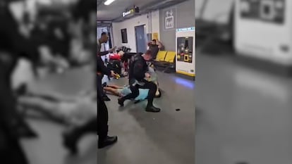 El uso de la violencia por parte de la policía vuelve a ser cuestionado en el Reino Unido, después de que un agente fuese suspendido de todas sus funciones como consecuencia de un vídeo en el que patea la cara a un joven que había sido reducido en el suelo en el aeropuerto de Mánchester. Las imágenes del incidente, que tuvo lugar el pasado martes y se saldó con cuatro detenidos y tres policías en el hospital, fueron calificadas por la misma Policía del Gran Mánchester —el área metropolitana de esa ciudad o GMP, en sus siglas en inglés— como “verdaderamente impactantes”. El propio cuerpo se puso al día siguiente en manos del regulador de conducta policial para una investigación independiente.