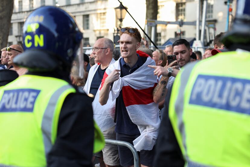 Aunque las concentraciones han reunido hasta ahora apenas a unos centenares de personas, en el mejor de los casos, el primer ministro, Keir Starmer, no ha querido esperar a que la crisis se le vaya de las manos. Cuando no habían pasado ni 24 horas desde que más de un centenar de manifestantes radicales fuesen arrestados en las inmediaciones de Downing Street, su residencia oficial, el mandatario laborista convocó a los jefes de policía para coordinar una respuesta integrada ante potenciales altercados y transmitir un mensaje de mano dura contra los promotores.