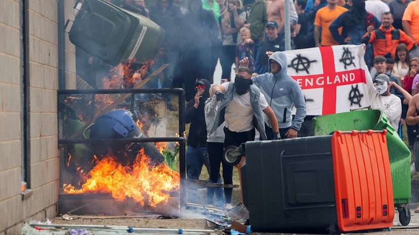 Este domingo, uno de los incidentes más graves ha tenido lugar en la localidad de Rotherham (en el noreste de Inglaterra), donde uno de los hoteles de la cadena Holiday Inn Express que aloja migrantes en situación irregular centró la hostilidad de varios centenares de manifestantes. Algunos lograron incluso entrar en las instalaciones y un contenedor fue incendiado, por lo que el despliegue de seguridad tuvo que ser reforzado, hasta que el edificio quedó rodeado por agentes antidisturbios.
