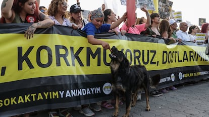 Erdogan no suele dar puntada sin hilo. Y las elecciones municipales del pasado marzo ―su primera derrota electoral en más de dos décadas― aún escuecen. En ellas, comenzó a despuntar un nuevo partido islamista que hizo campaña contra el colectivo LGBTI y los perros callejeros ―así, a la vez— y le amenaza por la derecha, con lo que esta ley va dirigida a contentar a esa parte más conservadora de su electorado. Con esta nueva ley, pone en aprietos al CHP, que desde marzo controla las principales urbes del país, al encargarle la aplicación y amenazar con penas de prisión de entre seis meses y dos años de cárcel a los alcaldes y responsables municipales que no sean capaces de imponerla, para lo que da un plazo de cuatro años.