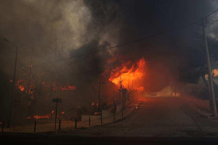 Vathrakogiannis explicó que el incendio se extendió rápidamente, “como un rayo”, debido a los fuertes vientos. Las llamas, que alcanzaron una altura de 25 metros, devoraron árboles y matorrales. “Comenzó en un punto y el pueblo quedó rodeado en un santiamén. Hace mucho viento”, describió Katerina Fylaktou, una vecina. Una gran nube de humo llegó hasta el centro de Atenas y oscureció el cielo de la capital.
