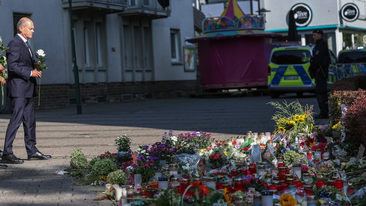 El canciller alemán, Olaf Scholz, prometió este lunes desde Solingen intensificar las deportaciones y reducir el número de entradas irregulares en el país. “Haremos todo lo posible para garantizar que aquellos que no pueden permanecer en Alemania sean repatriados”, aseguró con gesto serio en esta localidad de 160.000 habitantes del oeste del país, donde rindió homenaje a las víctimas. “Ha sido terrorismo. Terrorismo contra todos nosotros. Siento ira, mi ira se dirige contra los islamistas que amenazan nuestra convivencia pacífica”, aseguró. “Tienen que saber que no cejaremos en su persecución”, aseguró el político socialdemócrata tras depositar una rosa blanca junto a los ramos de flores y las velas que los habitantes de Solingen han ido acumulando cerca de la plaza donde se produjo el apuñalamiento.