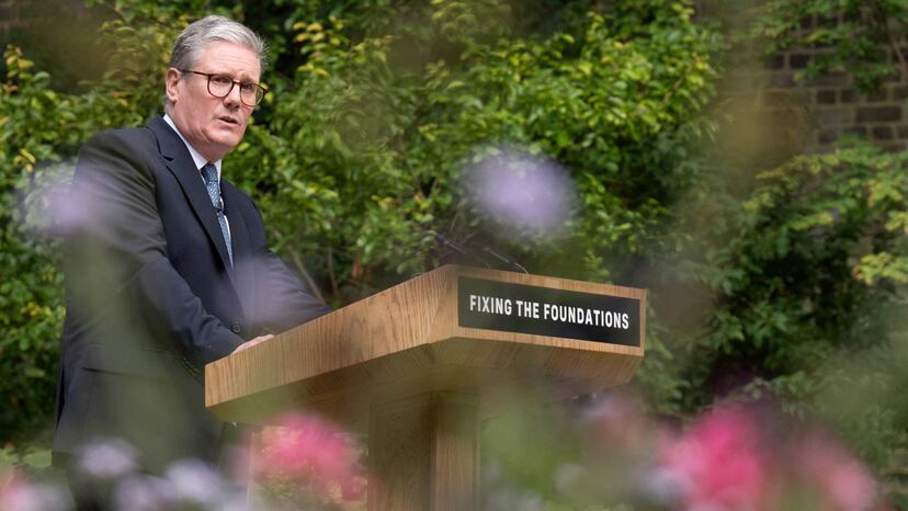 “Cuando el corazón de la estructura sufre una profunda podredumbre, no basta con taparla un poco. No puedes hacer una chapuza o tirar hacia adelante con remiendos fáciles. Debes reformarlo todo y centrarte en la raíz del problema, aunque suponga más tiempo y esfuerzo”, advertía Starmer, para justificar las duras decisiones que se avecinan. El atril desde donde hablaba portaba un cartel con el eslogan Fixing the foundations (Arreglando los cimientos).